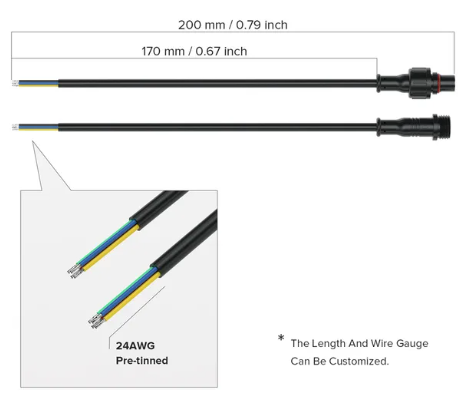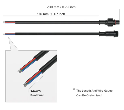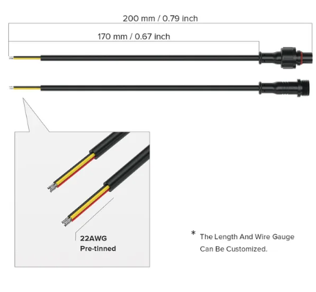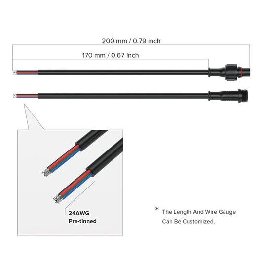 Led Connector 3pin 20cm Male to Female 22AWG White IP68 0.3mm2 5 Pairs/pck