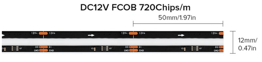 COB RGB IC LED Light Strip WS2811 Addressable 12vDC WS2812B White RA90 720LED/m 5m/Roll