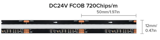 COB LED Strip Side View CW 24vDC RA90 480 Led/m 5m/Roll