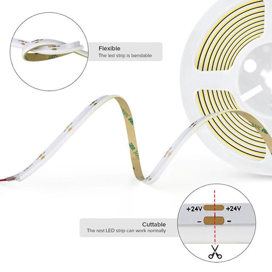COB LED Strip High Density Flexible 640 LED/m 24V DC 5M/Roll