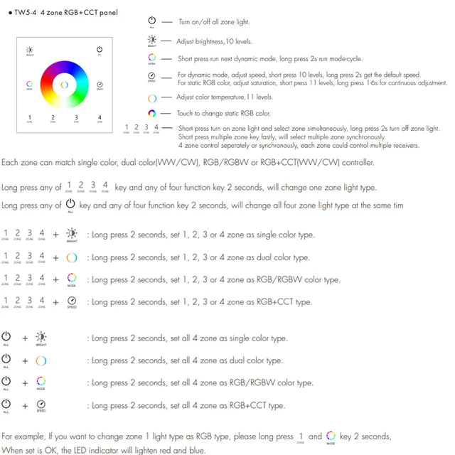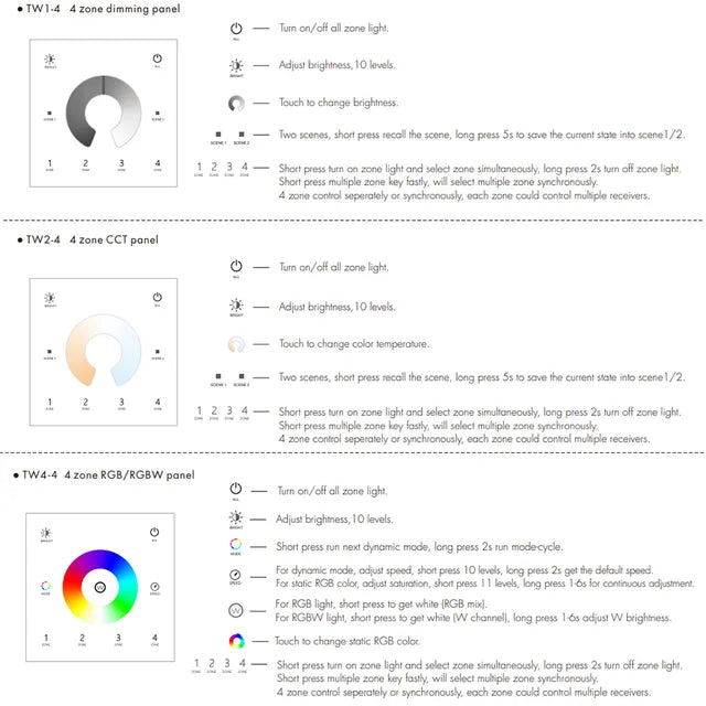 Wall Mounted Touch Panel Remote CCT/RGB/RGBW/Dim Controller